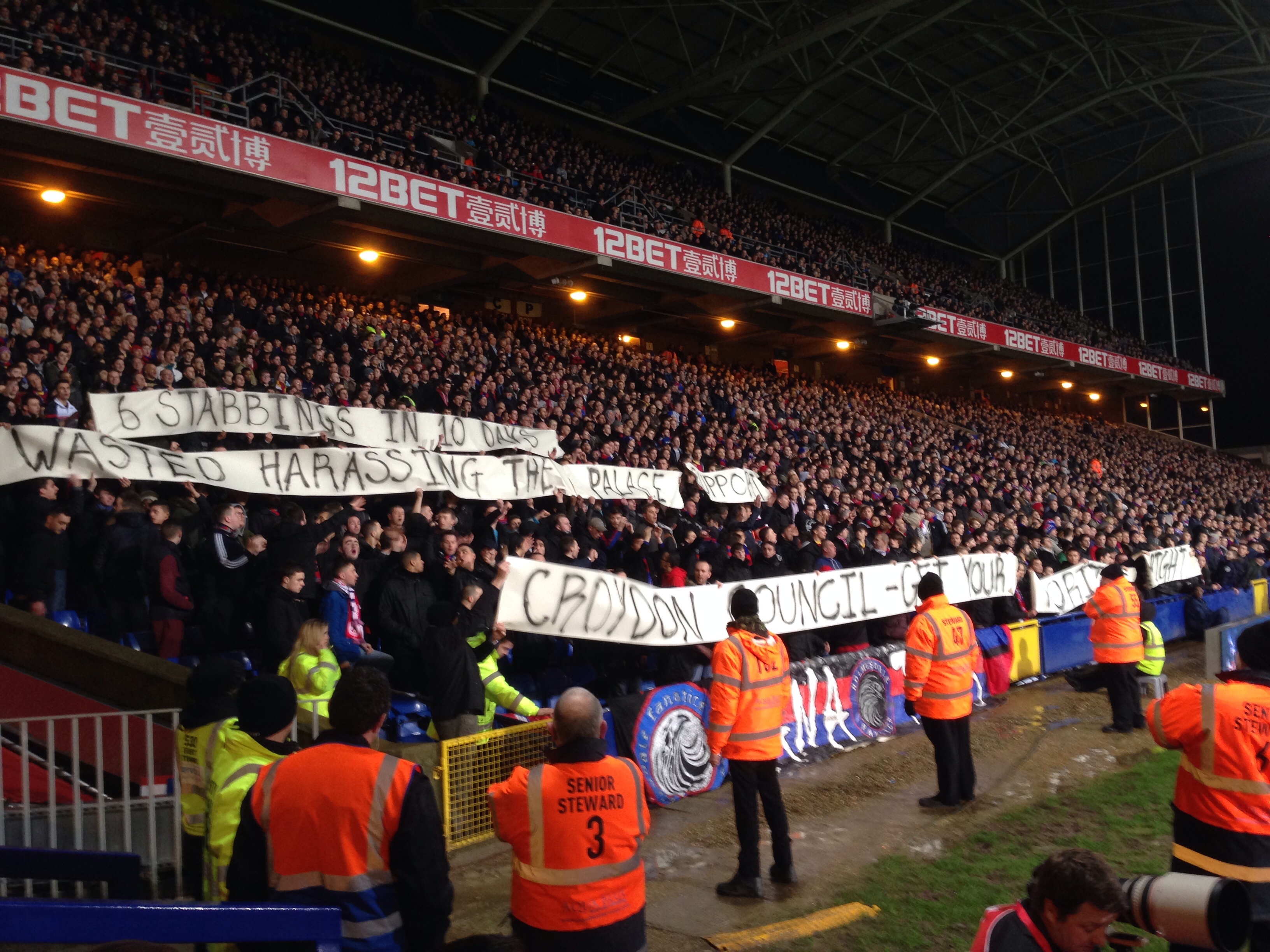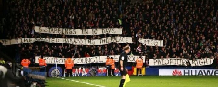"Six people stabbed in 10 days while the police harass Palace fans. The police and Croydon Council need to get their priorities right" Or something along those lines...