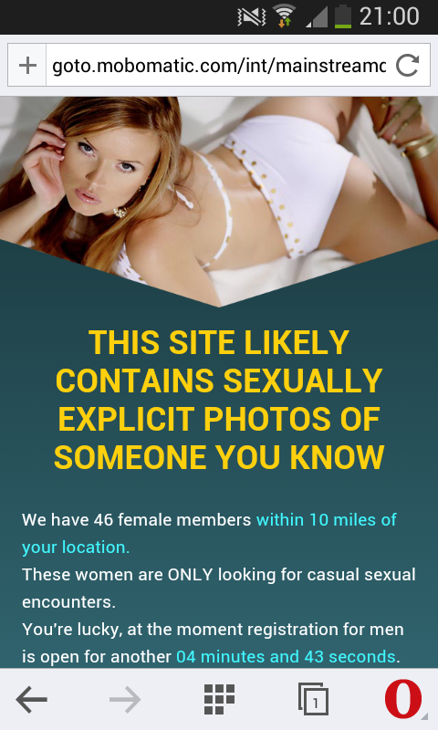 Miles. I'm not sure if you know how the Internet ads work on alot of websites these days? And hol is one of these. They track other websites that you look for and so on. So someone who signed into the hol after looking at trainers online will see ads for sports ware and so on. This is the very reason why when I'm looking at hol I see nothing other than asian babe's p*** sites. Because....well...no reason. So ultimately 90% of ads you see on here are due to whatever you or someone else has views at some point on the device you are currently using. I know that it does that sometimes. Right now I have adverts for buying houses etc that is nothing to do with me. I don't go on sites like the one I was redirected on and I don't go on adult sites on my phone either. It's happened a couple times in the past on here. Just thought I would make people aware as my girlfriend thought I was looking on sites like this when I wasn't.