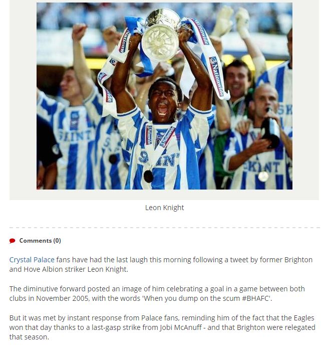 Bexley Dave Can you hear the Brighton sing? I can't hear a ******* thing! "The most arrogant, obnoxious bunch of deluded little sun tanned, loafer wearing mummy's boys I've ever had the misfortune of having to listen to" (Burnley forum) |