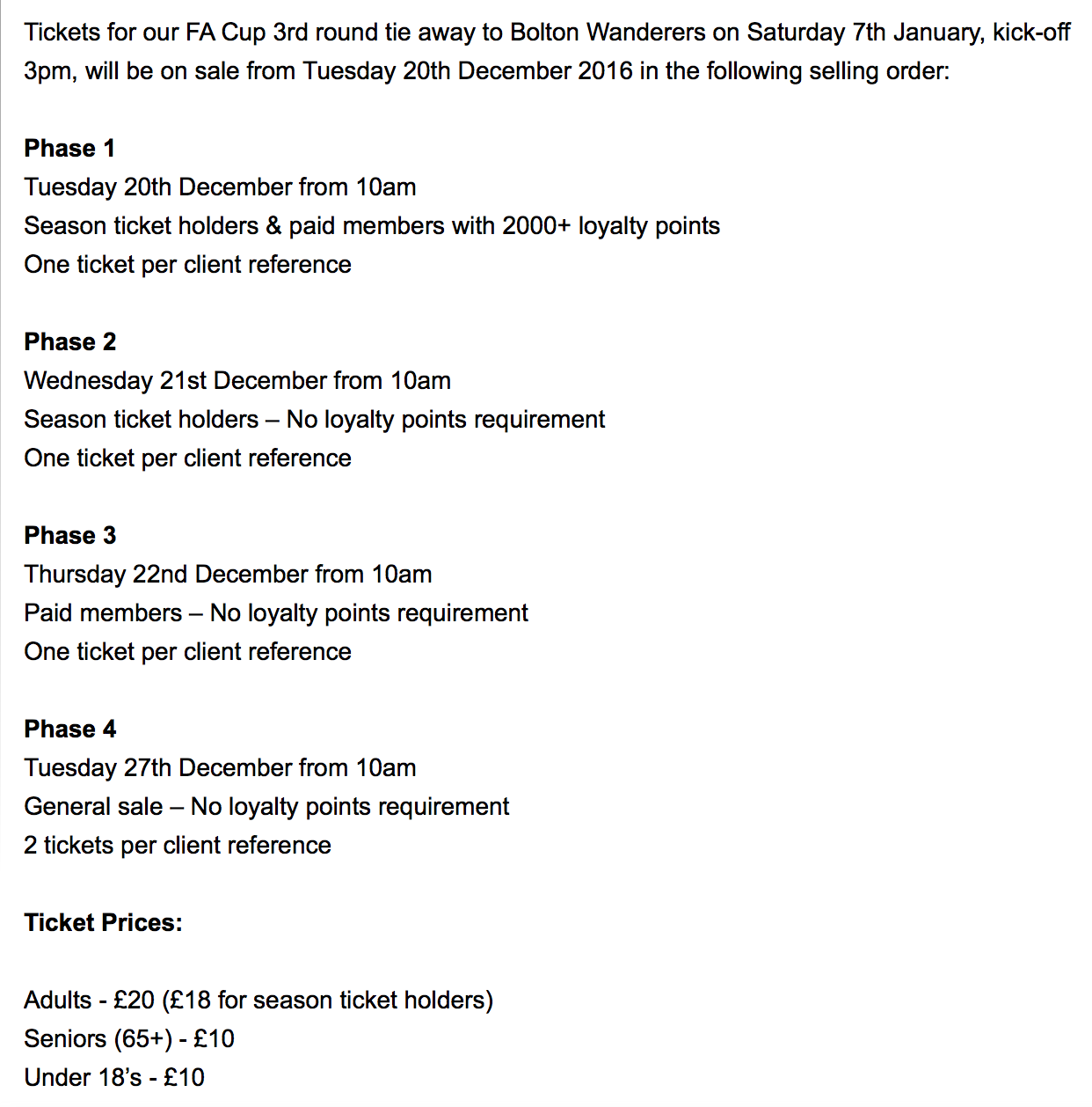 You are here: Home > Message Board > Ticket & Travel Talk > Bolton FA cup 7th January tickets