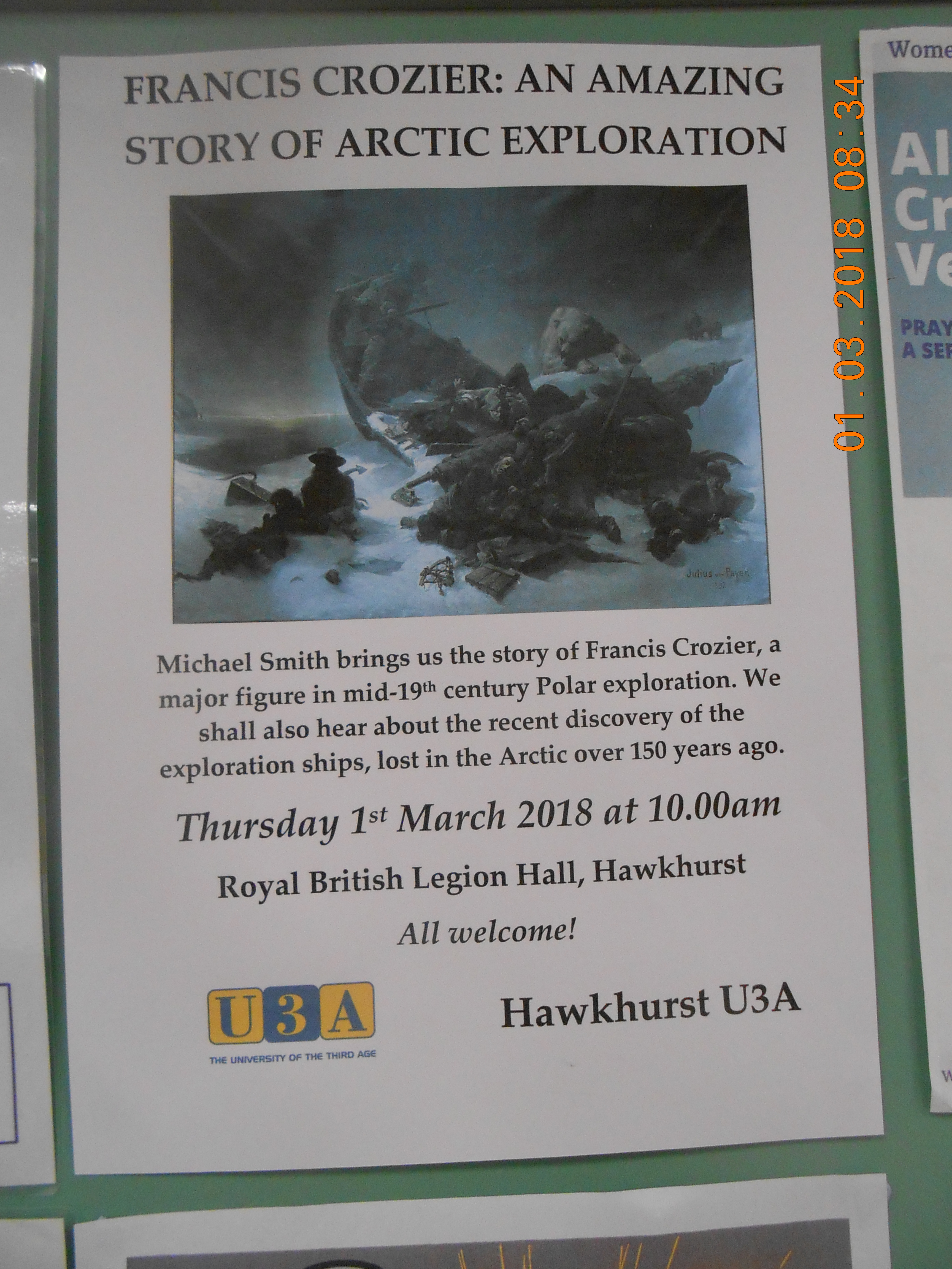 A talk on Arctic Expeditions this morning in the Legion Club. Cancelled due to snow