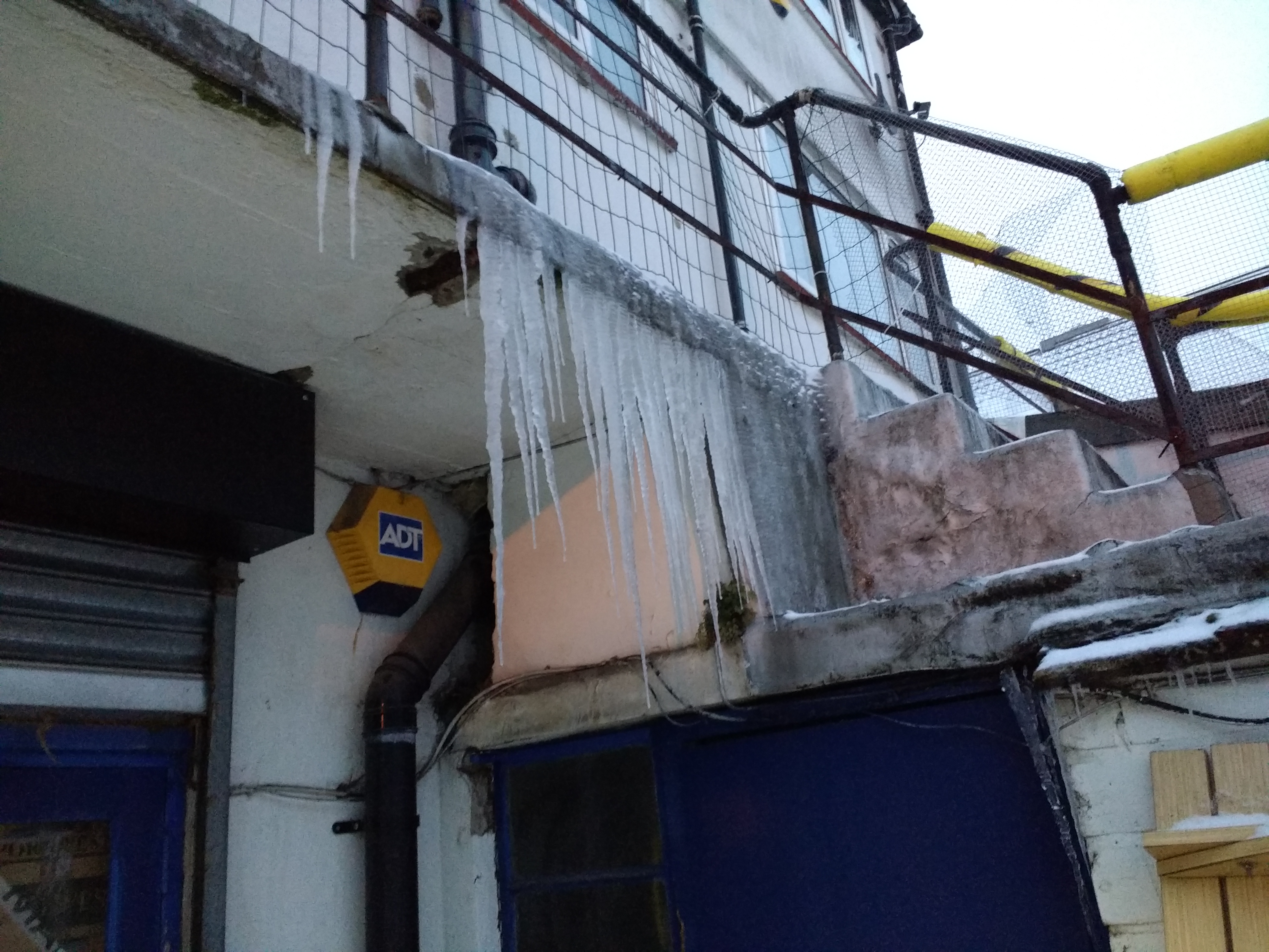 I'll start. Puddle in road next to hedge caused these icicles to form as cars sprayed puddle-water as they drove through