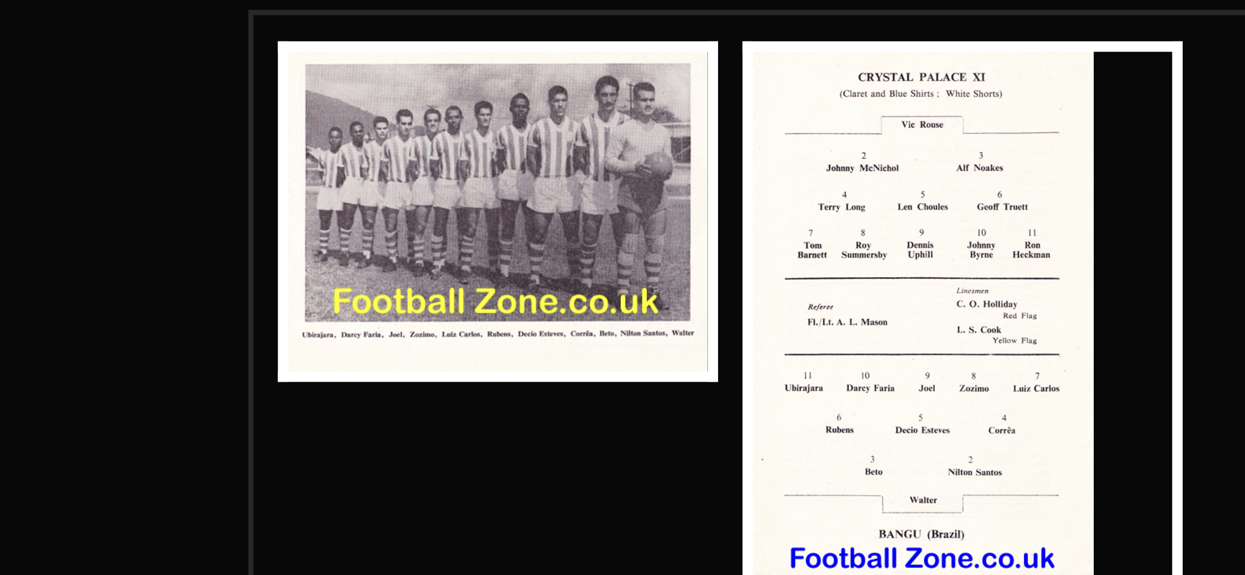 All I remember about that game (I didn’t go) was that I believe Bangu won 2-0 and people were interested to see how Palace would play without Johnny Byrne, who didn’t feature, because they were being called a one-man team in some circles (a bit like now in fact). The general consensus was that Palace played well, but were no match for the Brazilians. Palace were promoted from Division 4 at the end of that season.