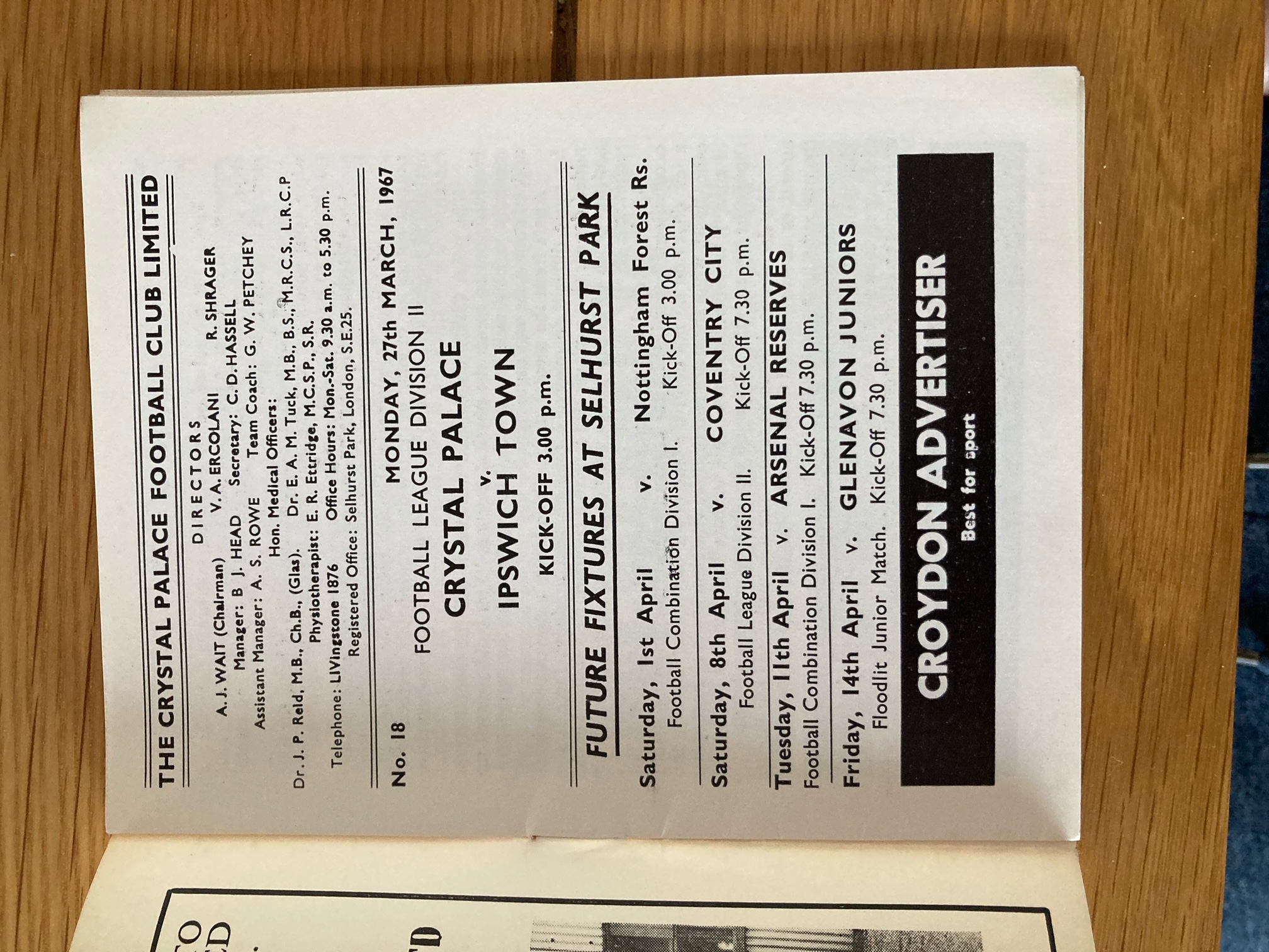 Hi, Have decided it's time to sell my collection of programmes. These start at the 49/50 season and cover over 40 seasons of home, away, cup, friendlies, testimonials etc. If you are interested, let me know what you are after and I can check to see if I have it. Thanks! 2nd January 1954 Home to Colchester? (My first ever Palace match).