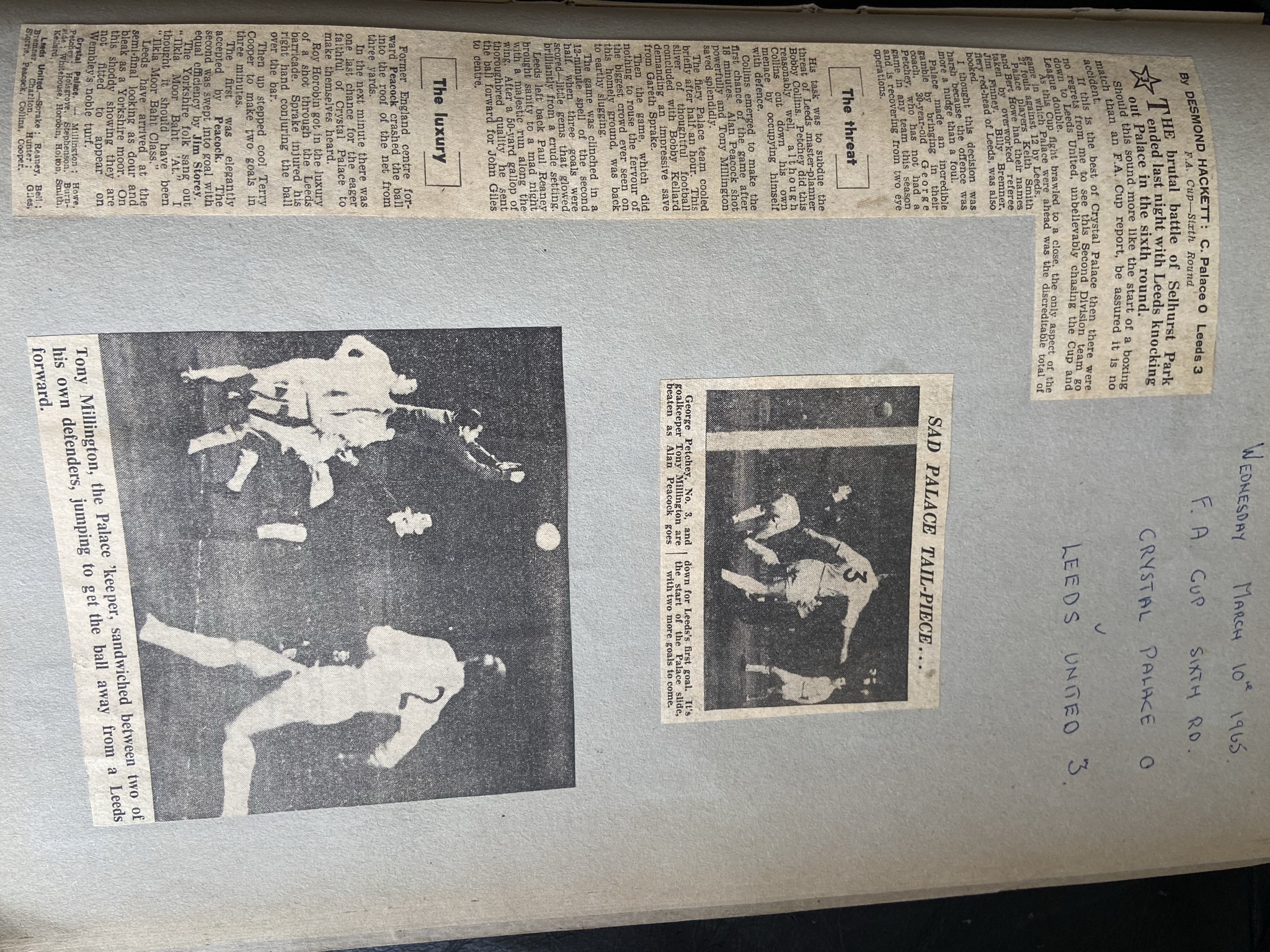 I have the programme from the Leeds quarter-final, although it was before my days as a Palace fan. I recall that I bought a job lot of programmes at a jumble sale in the late 60s or early 70s.