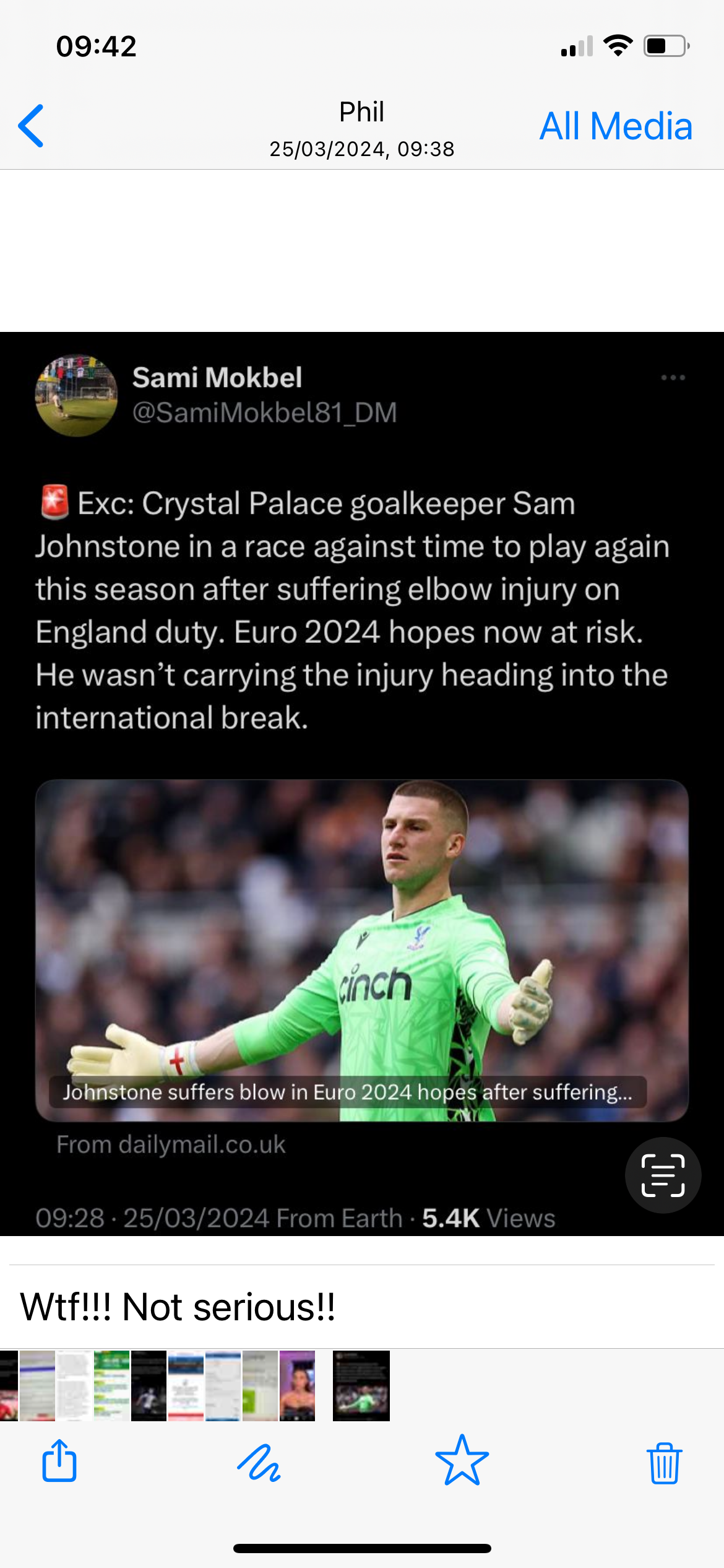 Have to be honest. I quite enjoyed a few weeks break from palace this time around. Plus this one gave glasner a mini mid "pre" season with the players to get his ideas across. I felt similarly. I am hoping Johnstone's 'injury' is an instance where he felt the slightest knock and therefore returning to club to be fit for the remainder of the PL was a priority over warming a bench for an int'l friendly.