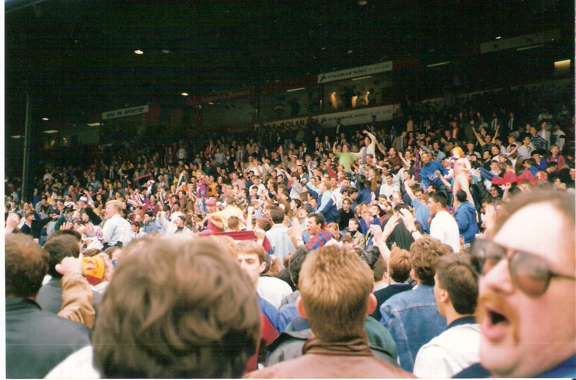 A Suckling goal kick. It was a rare sight throuhout the 80's to see the Holmesdale so rammed pack. You knew it was either a very special game for us or that Chelsea or Pompey had come to town!