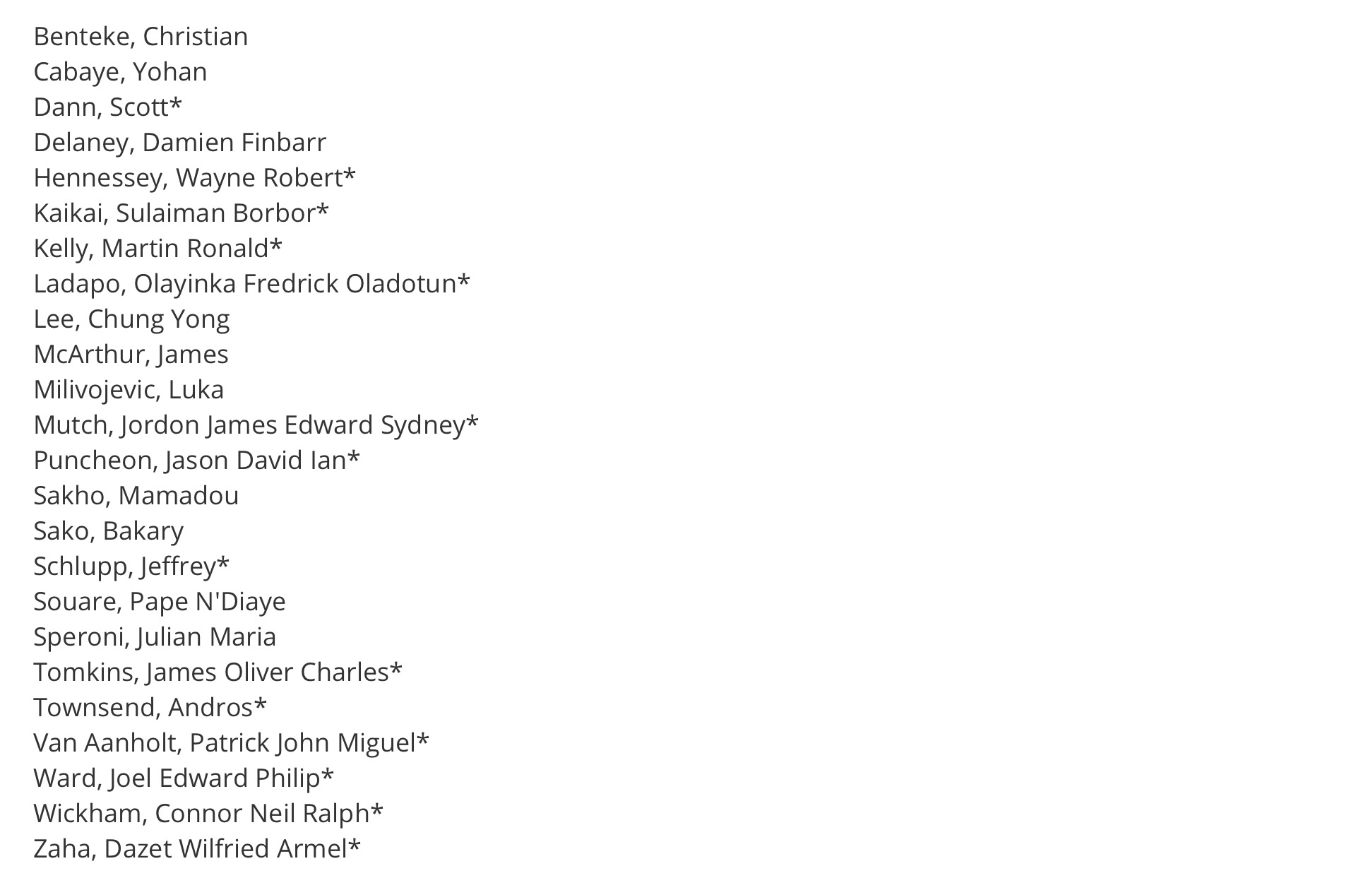 In the squad of 25 - Hennessy, Dann, lapado,mutch,Kai kai, puncheon,ward, Kelly ,Sako,lee, Delaney - that's 11 players We have only named 24 players. Kaikai isn't in the 24 because he's under 21.