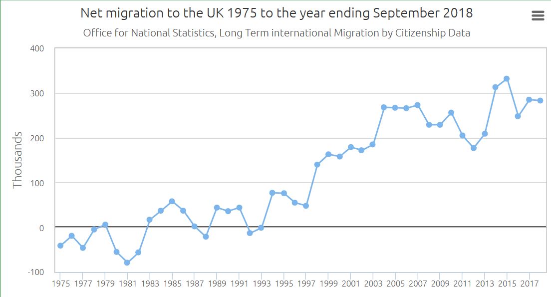 This is a graph showing the net migration into this country since the seventies. Note the massive increase in foreigners coming here once the Blair government came in......EU treaties took this country from manageable population levels to what we have now. The painfully obvious need to leave the EU is there for all to see. However, even bigger work needs to be delivered on non EU immigration.