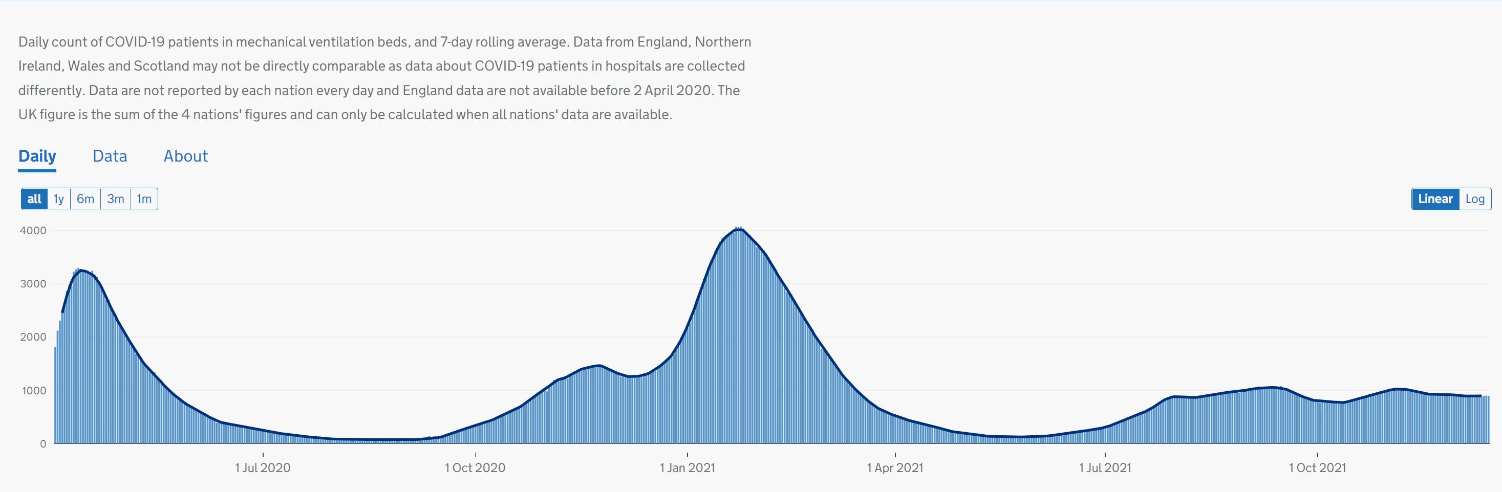 A look at the statistics on how many are in beds with ventilators, now and in comparison with the course of the pandemic.