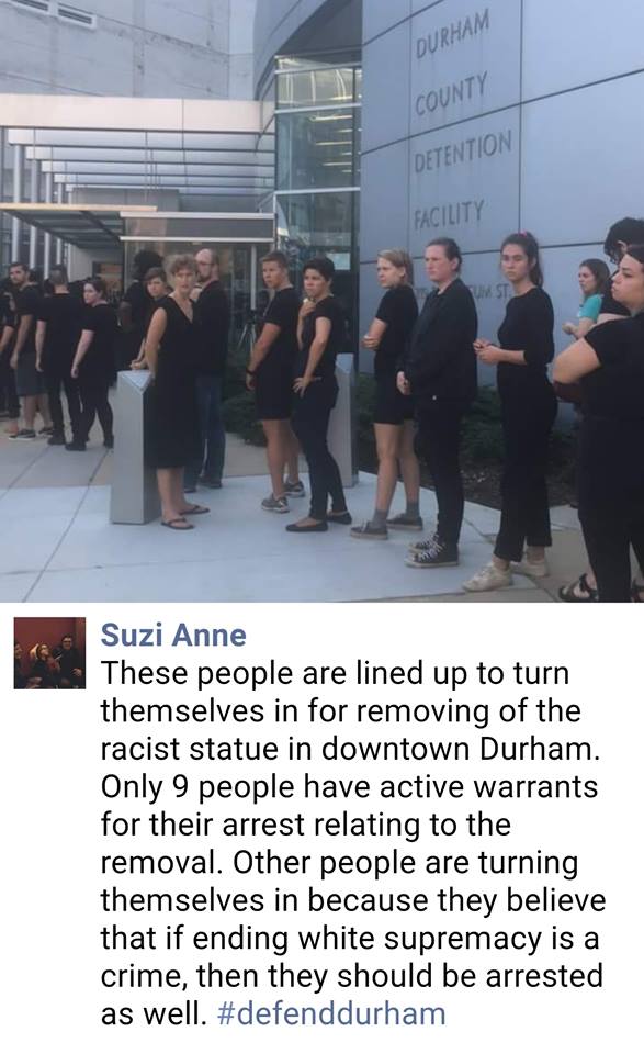 In an interesting development, those involved in tearing down the statue of a confederate soldier are turning themselves in to the police today. Even the ones who were not subject to warrants. Edited by Ray in Houston (17 Aug 2017 5.41pm)