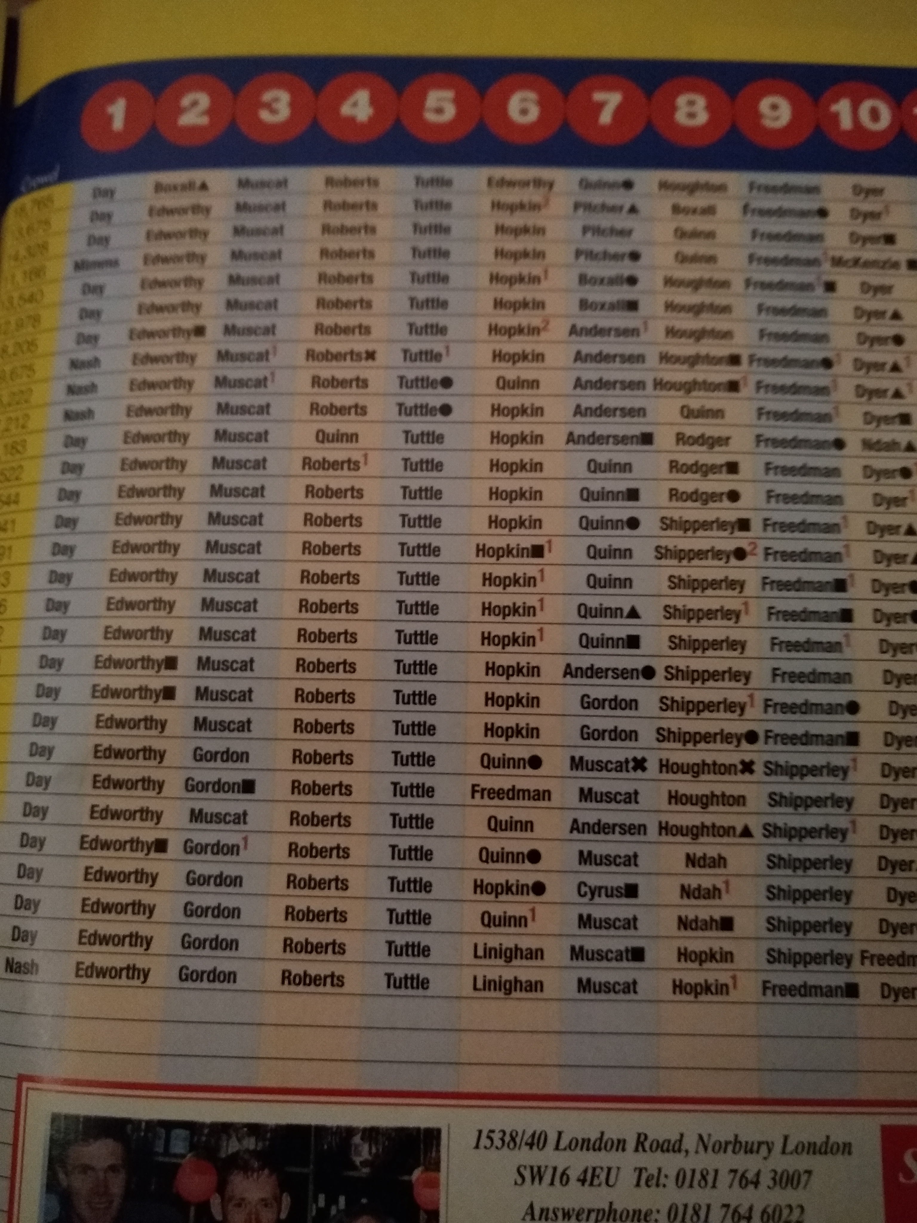 No, it isn't what I'm going on. As stated, I looked up the old programs. It's just a matter of fact that the entire internet supports my position, because I'm correct. Here's a couple of photos which speak for themselves: especially regarding the illogical position of: "he was number 2 so must have been a RB". I've photographed a program from one of the games I went to. Looking at the line ups we can see that when he wasn't deputising for injury on either side, he was playing in a back three of a (most of the time) 3-5-2 formation. The players chosen supports this. Look, Number 7. He must have been a right sided midfielder then, we're both incorrect.