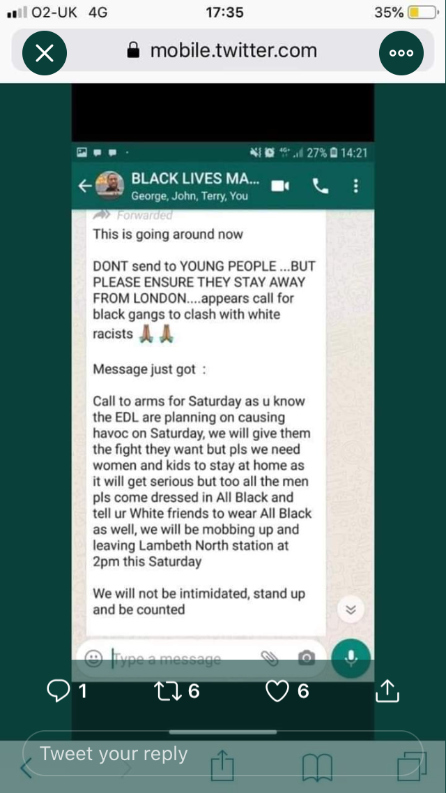 Getting rather silly - BLM arranging a meet with EDL for a fight!