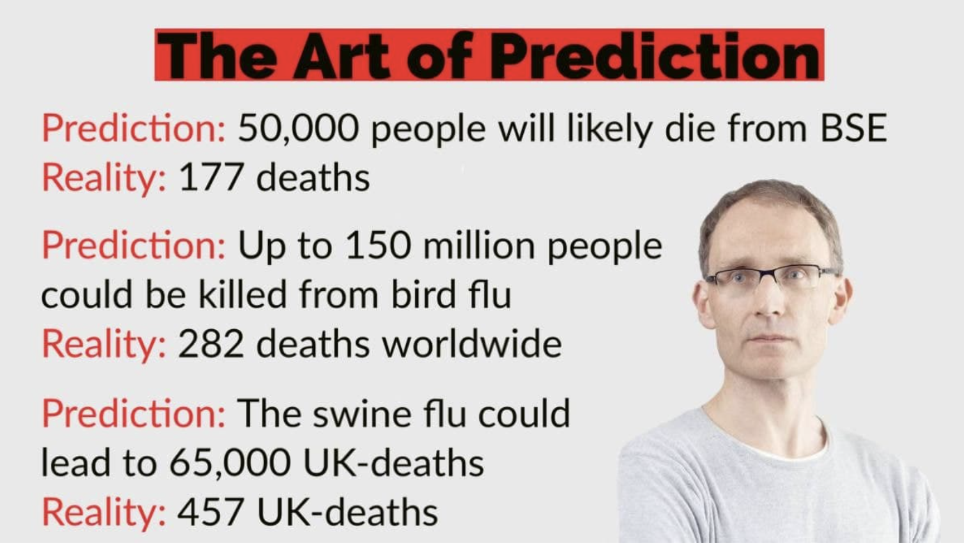 It's always easy to take things out of context, when searching for mud to sling. Worst case scenarios are not predictions. They are warnings to elicit actions. How many times does he get to be spectacularly and dangerously wrong at our expense? Apart from the BSE, Bird Flu and Swine flu disasters already mentioned, policies implemented under Ferguson’s advisory based on his data resulted in the mass slaughter of over six million animals to stop the spread of foot and mouth. A decision which left rural England economically devastated at the cost of £10 billion. You are defending the indefensible.