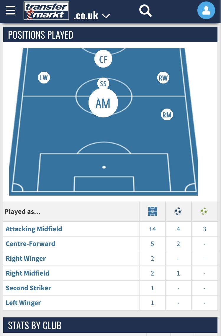 Transfermart, CF 6 AM 5 RW 4 LW 2, i see him as right footed left winger, same as wilf, or as i would play him CF. I’d check that again if I were you…