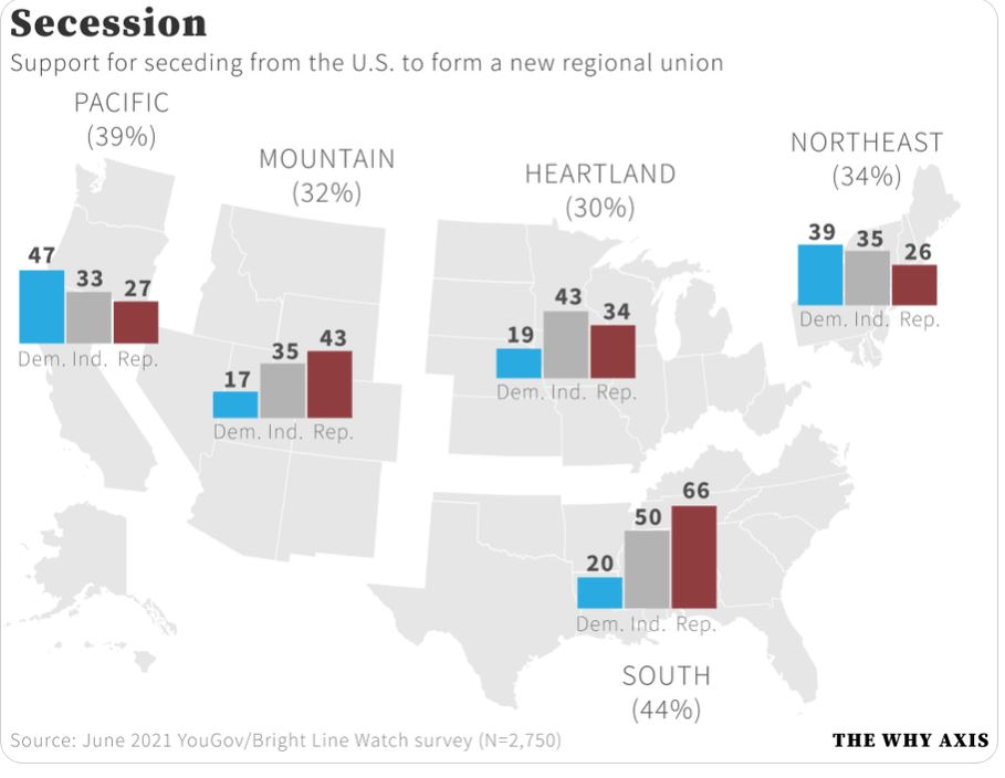 Like I said on here a long time ago now, support for secession is only going to get stronger. The worldviews of right and left have separated so far that they aren't really compatible and that's filtering down to Mr and Mrs Normie.