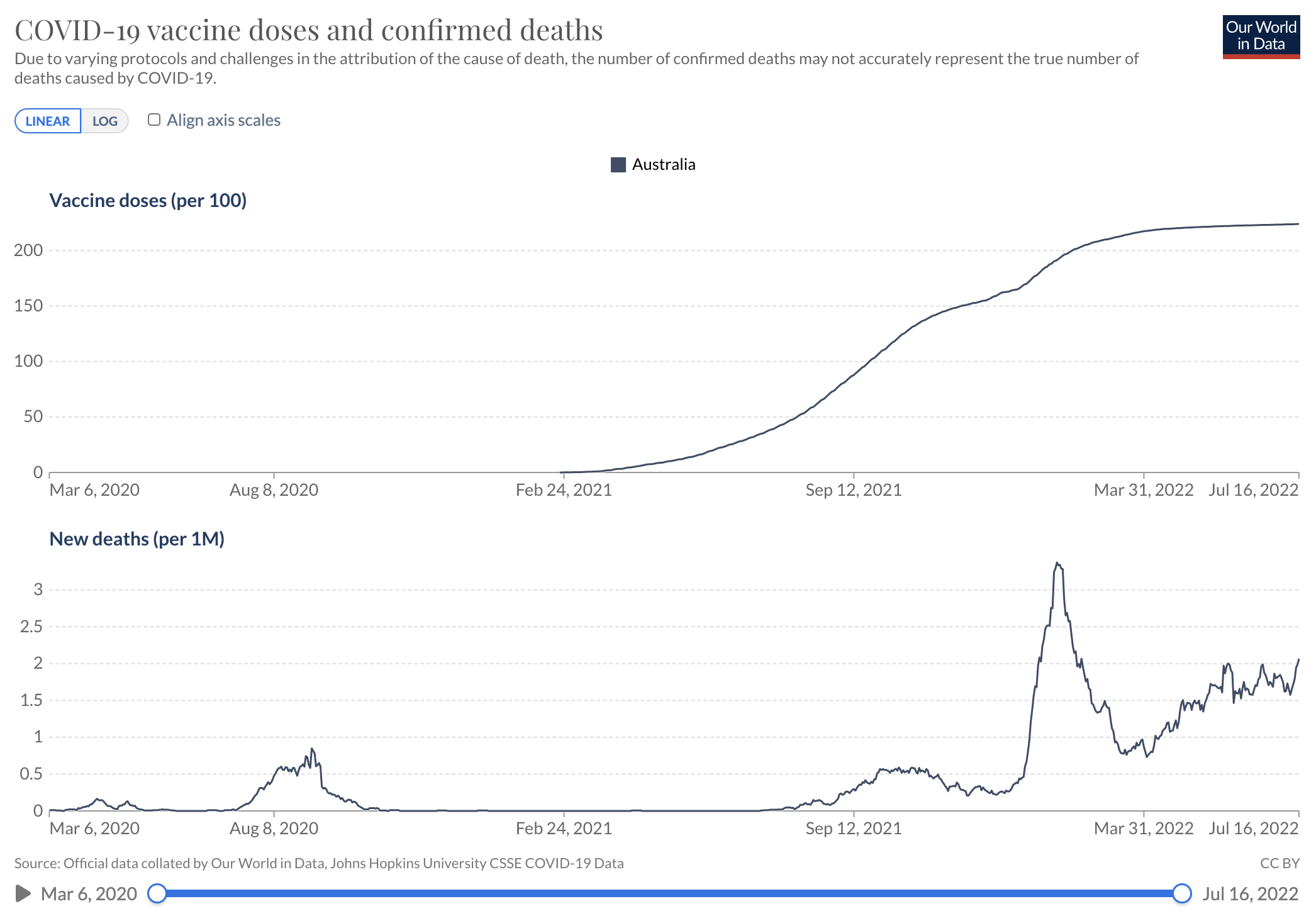 Probably one of the most vaccinated countries in the world. For me, I just don't know what the real picture is in relation to how many are really getting sick or dying....and what of. Or are they getting an infection but not getting ill? Are the media telling us or looking for headlines....don't know. I must admit other than this discussion I rarely look nowadays. You should care because they are gearing up for another lockdown and another round of "boosters". How Australia is doing:
