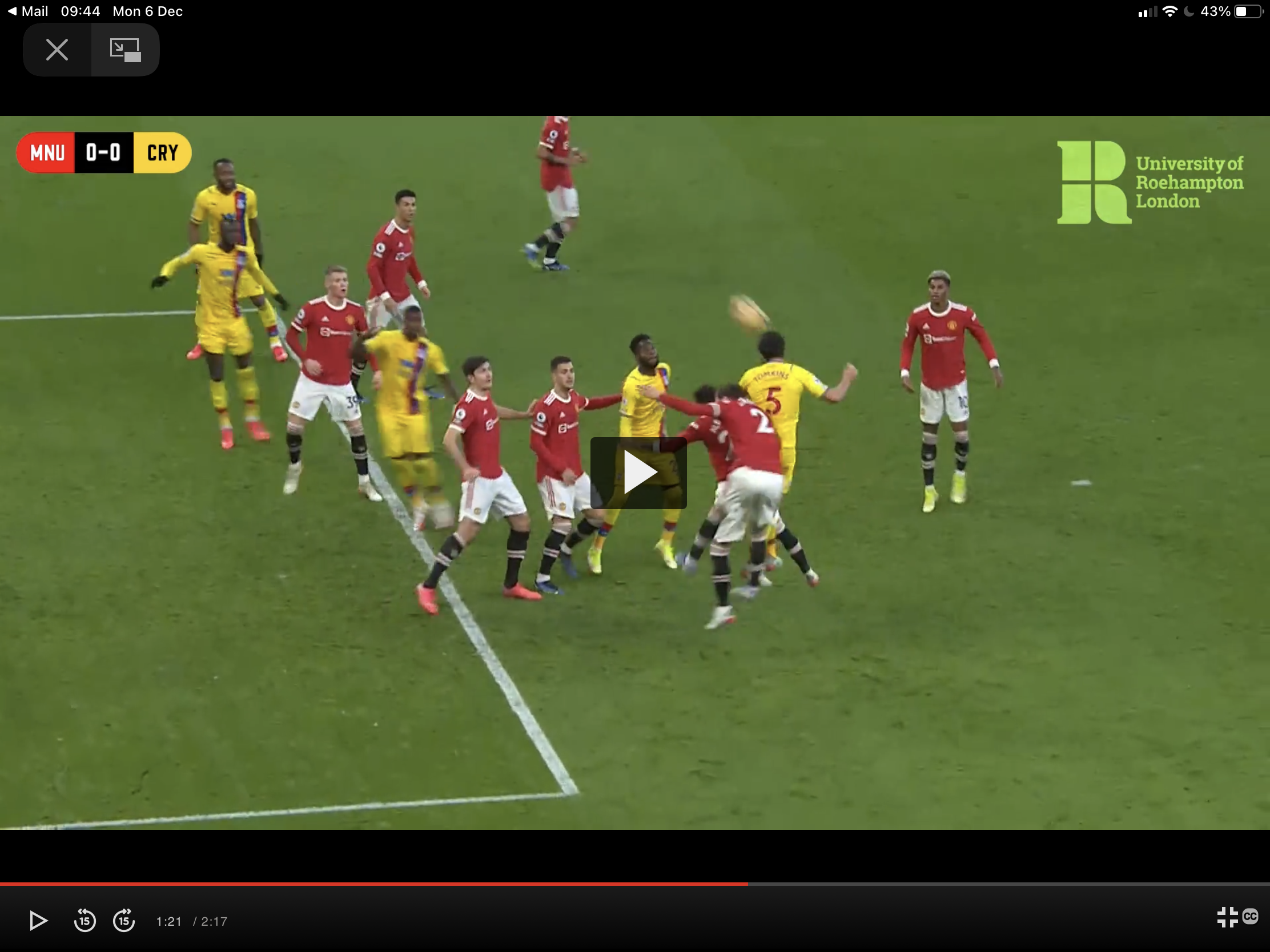 Kouyate and Mitchell are definitely offside when Tomkins heads the ball. From studying it I believe Ayew would have been judged marginally offside by VAR (especially knowing our luck). His stance seems to be wider than McTominay’s and I think Ayew’s right foot would’ve been slightly ahead and therefore offside. It is close though. Thanks for that. Although marginal I think Ayew’s foot would’ve been given offside.