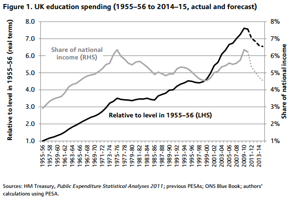 Education spending. See graph and note spending under the last Labour government. This government has planned real cuts of 6.5% over the remainder of this decade. DfE spokesman acknowledging the big increases in spending since 1990 but failing to mention that all of that was due to the previous Labour government. This in the midst of a productivity crisis. WTF? This BBC podcast discusses the numbers and also fact checks Boris (who knew, he talks a load of old boll*x) Problem also is, that increasing spending on something life the NHS or Education is actually resolving any of its problems. You can increase spending on a f**ked car, doesn't mean its going to make it work, just because you put fancy tires on the wheels.