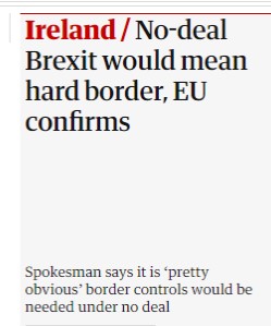 Commission spokesman says that if there's a no deal Brexit 'you will have a hard border' in Ireland Well at least that will solve the problem of who is going to pay for it It's comments like the above that make me even more convinced that we need to escape the clutches of these unelected bully boys