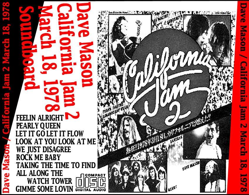 Todays second download is a set by former Traffic guitarist Dave Mason which was recorded at the California Jam 2 which was held in March 1978. This is in superb quality and DM plays a top notch set. Dave has played with some of the best artists in the business including Hendrix, Clapton, The Rolling Stones, George Harrison, Fleetwood Mac... and more... he has released a whole load of albums as well as being a prolific writer.... This is a great bootleg and is thoroughly recommended.... Here is a download link I found for :- Live at the California Jam 2, Ontario Motor Speedway, California 18.3.78 - Dave Mason (Bootleg) Quality : Superb Tracklisting : Feelin Alright Download Link : [Link] Filesize : 116MB Back Cover : [Link] Enjoy!