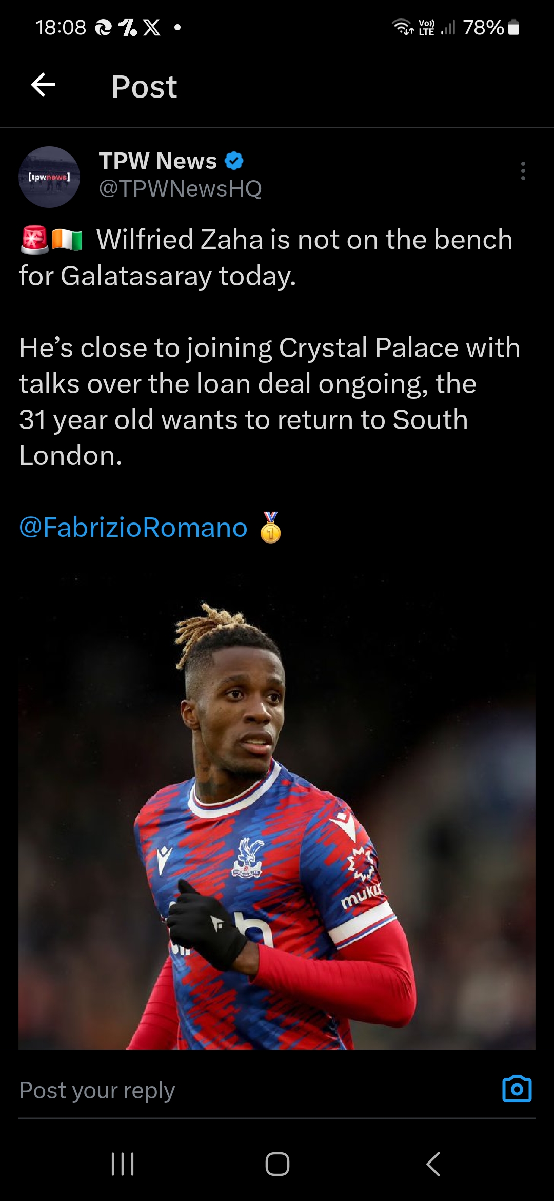 Schlupp or zaha to come on, I know who I'm picking Me too, but, unfortunately, Jeff has been linked to Celtic. Wilf and Galatasary are taking Parixh for a ride Edited by pssguy (09 Aug 2024 7.27pm)