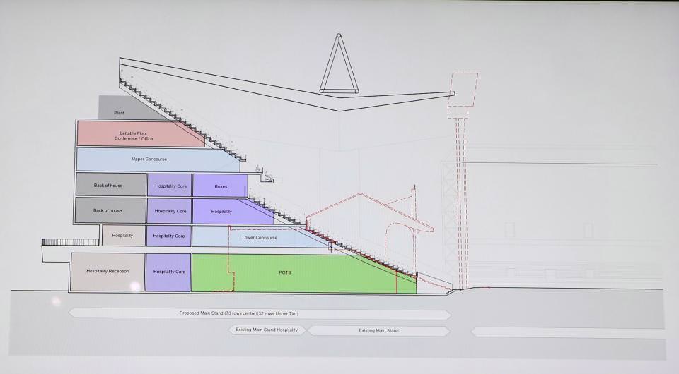 The details for the new main stand all show the executive boxes at the WH stand remaining in place. In fact there is a new entrance area to those boxes proposed, so no obvious plans to scrap them. There is a drawing in the design and access statement (submitted with the application) which I don't know if they meant to show or not. It shows in ghostly feint lines, an upper tier of seats (with stairwells) where the Whitehorse Boxes currently are. Perhaps that is future thinking? Obviously, this isn't part of the current application, but perhaps it is a nod to what the club and its architects have in mind? see \/ \/