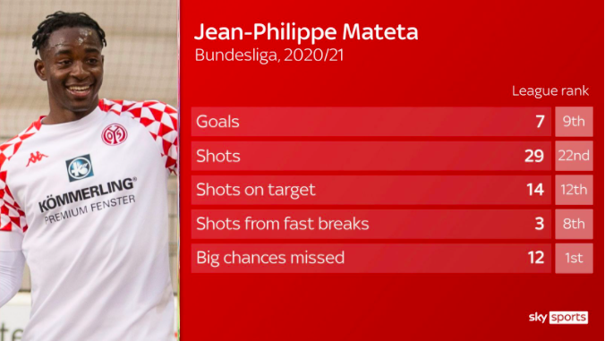 Mainz may be struggling, but he gets a lot of opportunities, good opportunities. Hopefully that's a sign of him doing the work to get into those positions, but if the approach work is being done for him I can't help but feel I'd rather have Bats on the end of those chances, even with how his season has gone. Fingers crossed he can get as many chances as that and gain the composure to finish.