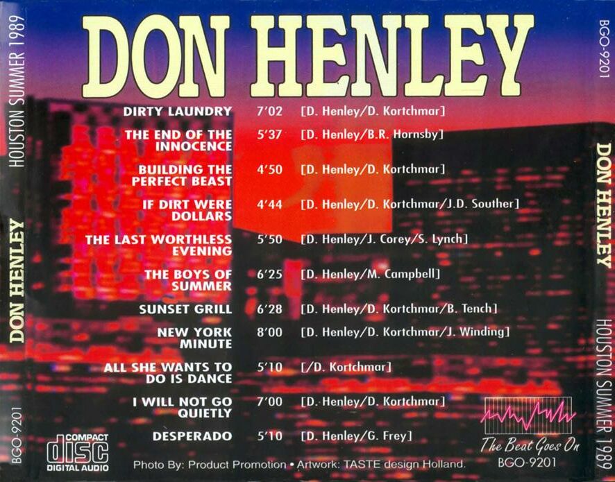 Todays first download is a set by Don Henley (The Eagles) which was recorded at The Summit in Houston Texas in 1989. This is in superb quality and is a wicked set that was also broadcast on FM radio. Some great stuff on this one - with a few tracks by The Eagles - as well as his most famous single hit The Boys Of Summer. This is thoroughly recommended...... Here is a download link I found for :- Live at The Summit, Houston, Texas 15.9.89 - Don Henley (Bootleg) Quality : Superb Tracklisting : 01. Driving With Your Eyes Closed Download Link : [Link] Filesize : 182MB (Including Artwork and Tracklisting) Back Cover : [Link] Enjoy!