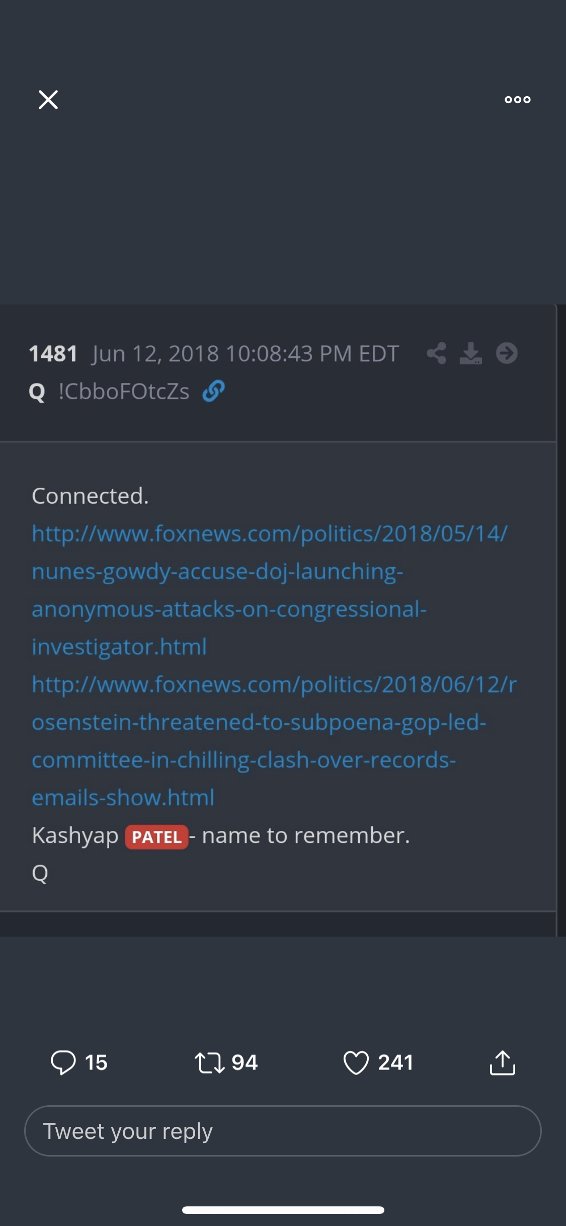 Q told us about Kashyap Patel two years before his appointment today. I’m sick and tired of people calling it a conspiracy. Look into it deeper. Spend a week checking their site. You will see for yourself the media are running scared from it