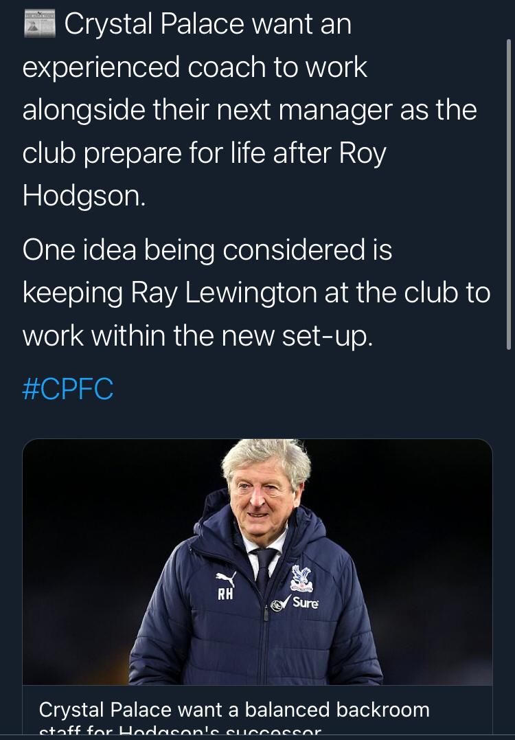 I think it will be Roy. We don’t have much money it seems sadly, so that isn’t a great attraction as it makes the job twice as difficult. I think we are holding out for Dyche but don’t want to pay up his contract and so probably hoping he resigns so that it saves us a few quid. Without sounding rather gloomy I also believe most of the out of contract players will resign on short term deals just to keep us ticking over for another year. I would dearly love Palace to progress but it seems that it’s getting harder and harder to the point that the Premier league is outgrowing us. By the way I would like to be completely wrong with my view and get a younger manager in with fresh ideas, and give him some financial backing but I don’t see that scenario. Agree. Every year another one or two PL teams get an owner with proper money who invests in taking them up a level. Newcastle are trying to get there as are Burnley. We are in a dwindling number of teams scrapping it out at the bottom. But we are good at avoiding the bottom three, helped by promoted teams without heavy investment who find it hard to compete. Next season there will be three of those, so we may be in a group of seven or so fighting it out. Not a given we will go down whoever the manager is.