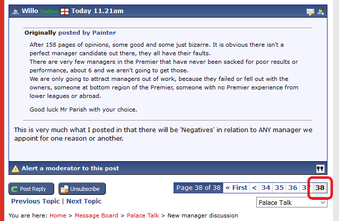 After 158 pages of opinions, some good and some just bizarre. It is obvious there isn't a perfect manager candidate out there, they all have their faults. Good luck Mr Parish with your choice. This is very much what I posted in that there will be 'Negatives' in relation to ANY manager we appoint for one reason or another.