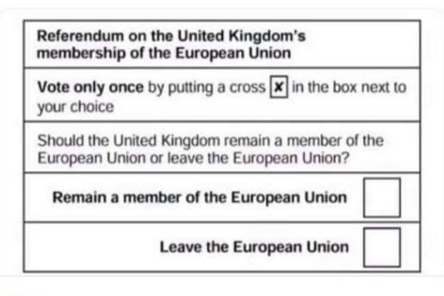 This is the referendum question on the paper we answered. Nowhere on it did it say...if you vote leave.....we are leaving, but only if we can get the deal we want. Betrayal. It was written on the back of the voting slip, in braille.