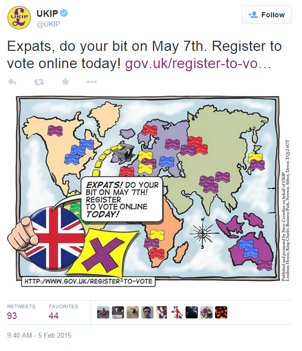 Ukip are urging "expat" Brits living abroad to do their bit, by registering to vote online, and to support their anti-immigrant agenda on May 7th. Fair enough to canvass votes however does this not smack a little of hypocrisy? It seems that if your British, and working or living abroad in places like Spain, Germany and Poland, or indeed anywhere else, you're not an immigrant to those countries, but have some special status as an "expat" and well, that's not quite the same is it, and perfectly okay for us Brits to be doing.