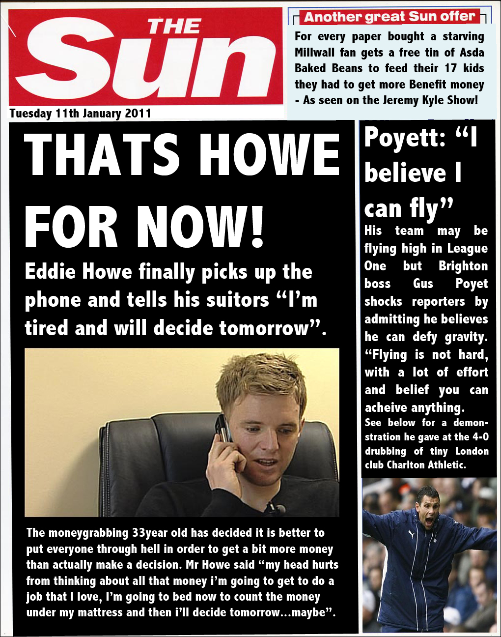 Breaking News!! Howe gone to bed and will decide in the morning!... Edited by Walberinho (11 Jan 2011 12.22am)