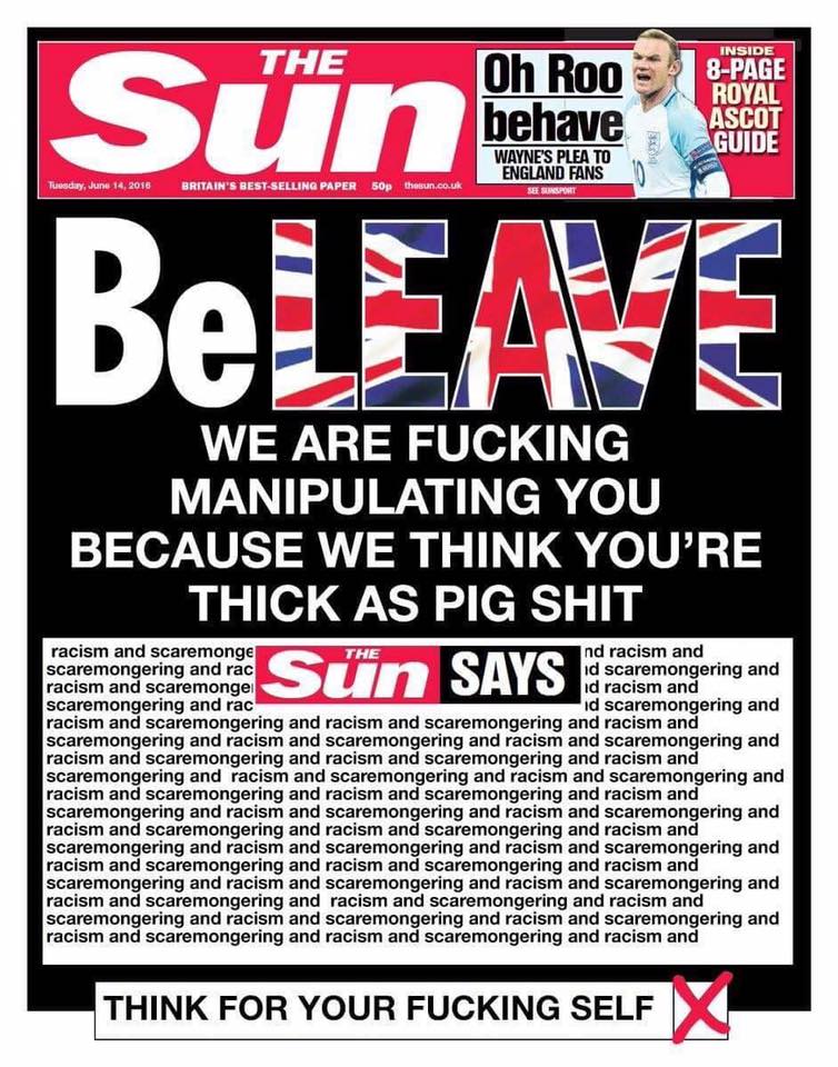 A bit simplistic, but a little truth I feel. It would be nice to have a press that is more balanced a less propagandist. Edited by nickgusset (17 Jun 2016 11.24am)