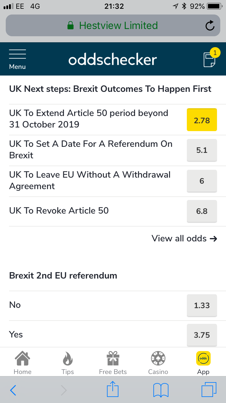 I wonder what the bookies odds are on Brexit by the end of the October date the EU extended everything to.