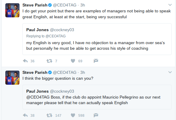 Conversely should potential managers cross us off their list of clubs to interview because we want to interview other candidates or does it only work one way? Regarding pellergino- he hasn't been at club as a manager for longer than 2 yrs. His last 2 job, he's done 1 year and left. Obviously looking at our history with managers , he fit right in. He isn't this long term manager that parish described in his radio interview.