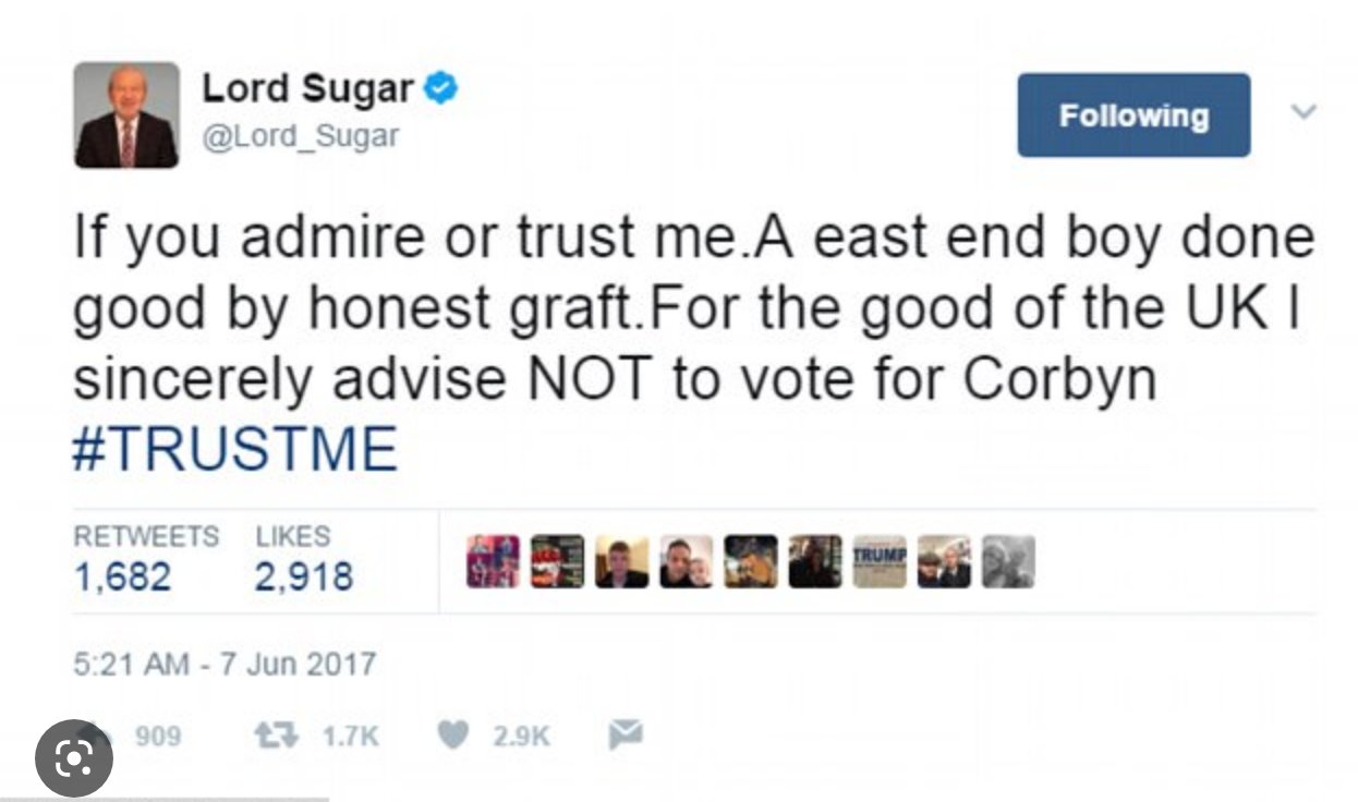 I cannot abide Sugar, but no mention of Nazis, Linekar has had several warnings. That’s moving the goalposts - you said “ As the BBC is impartial ( ha ha) they cannot be seen to be allowing an employee to be so politically biased” I’m providing a clear example of an employee doing exactly that (of which there are many) and now it’s not about being politically biased, just that they have to mention Nazis?