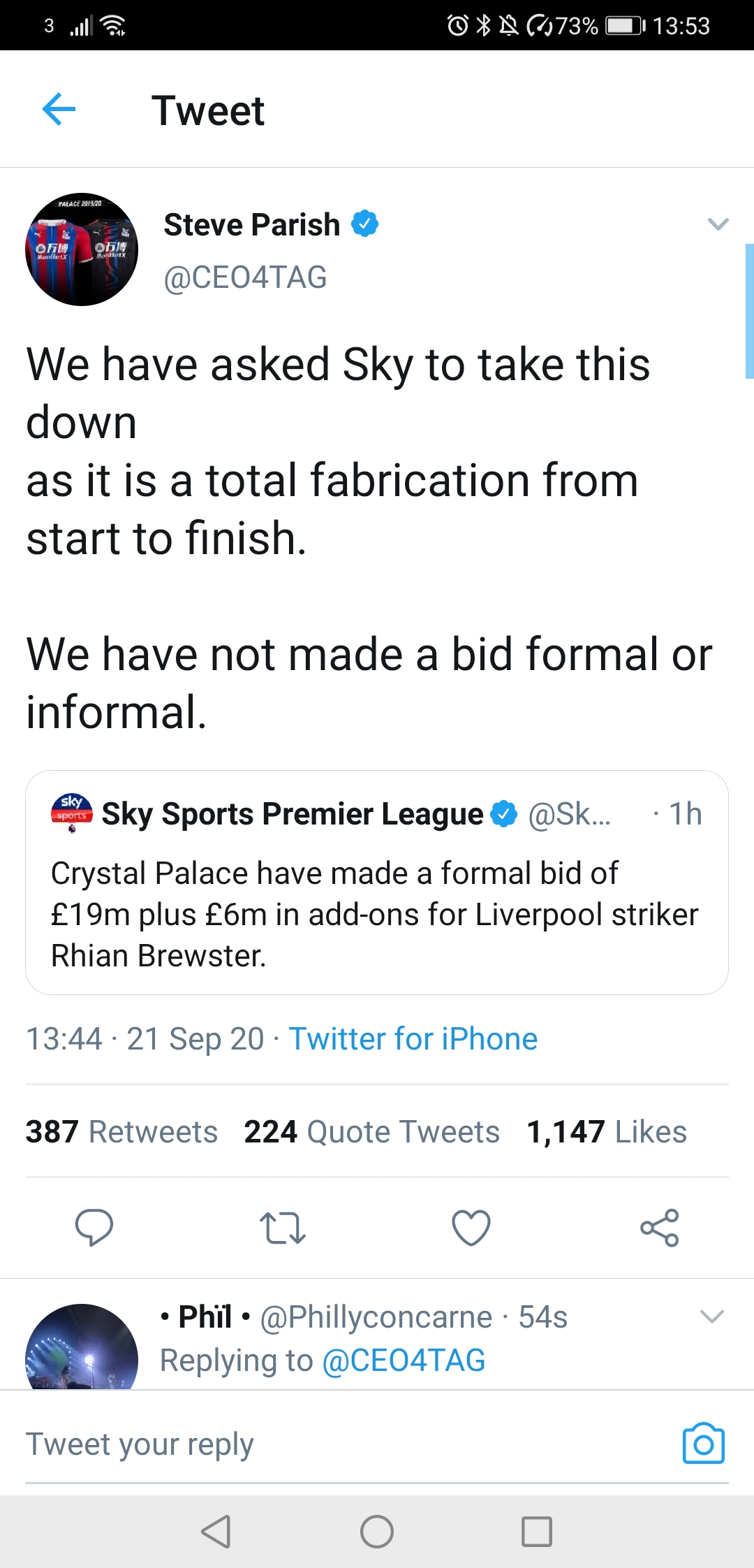 Parish has just put on his Twitter account that he has asked Sky to take down this bulletin as we haven't made an formal or informal bid....