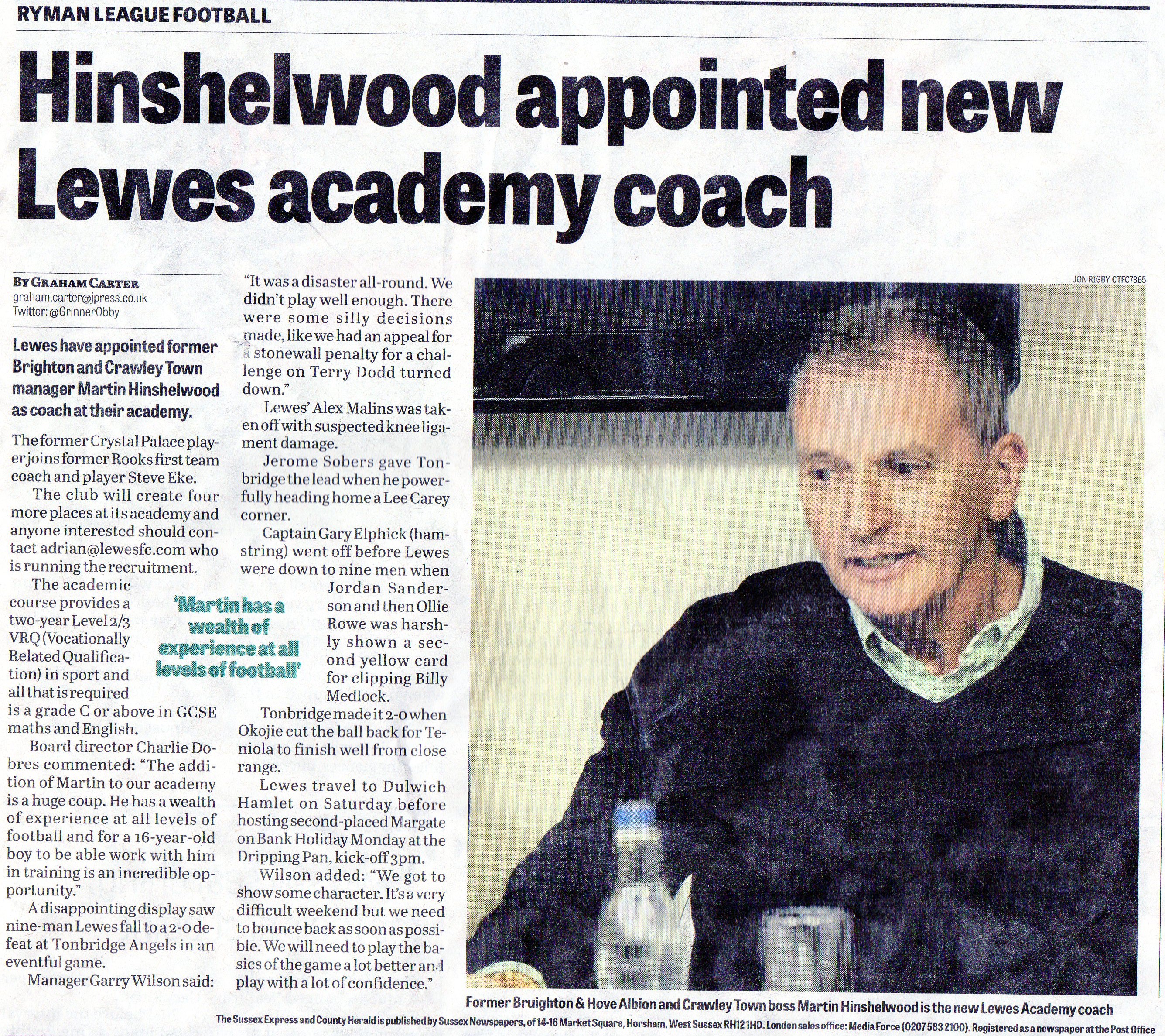Martin, has just got a job with Lewes academy.
