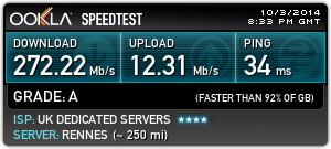 Virgin media... 133Mbps (notwithstanding kids streaming stuff upstairs) Have got upwards of 44Mbps on 4g before!!!