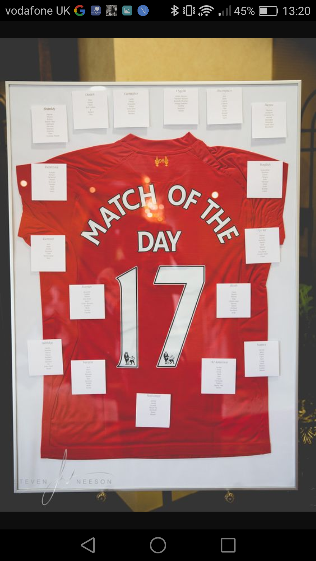 Hi. I plan weddings and venue decor. I have done several football themes weddings one being a west ham utd one but same rules apply. Happy to share ideas and suggestions.. If having a formal sit down meal name tables after former or past players. You can also get football themed table plans made. I can send you some links. You can get invites made which look like football ticket stubs Chair covers in white with red and blue sashes round each chair will really bring the look of the whole room together. This is something I would he happy to discuss via pm if you wanted a quote. Favours.. You can get football sticks of rock with the club name through the centre which would act as a.Thank You gift to each guest on their place setting Add a small splash of yellow perhaps with flowers Red or blue bridesmaids dresses / men's cravats Will come back with more ideas as I think of them. Would love to plan this lol You sound like you know what you are talking about, but the lack of taxidermy makes me dubious.