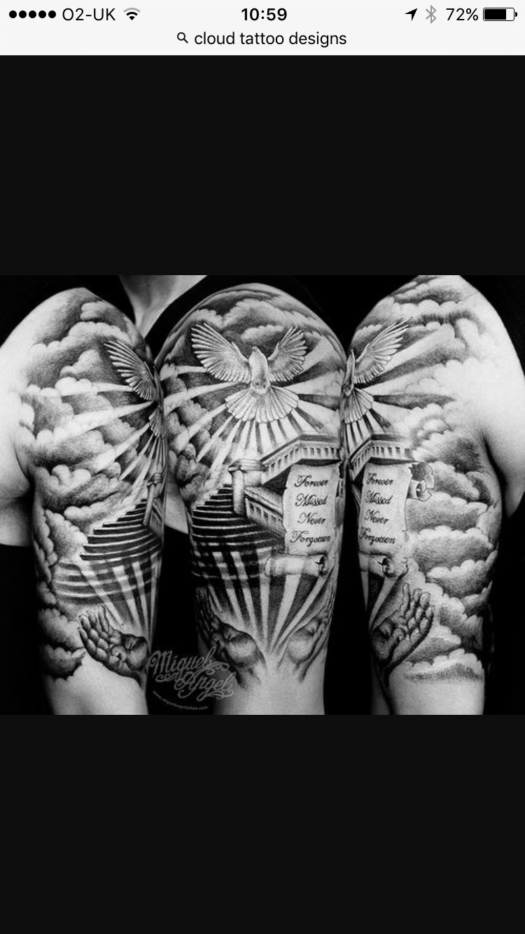 Looks like final design is done. Thoughts guys? Get the design done first on paper....so you can see how it will look...you may want to get a better template for the eagle, and the font.. a tattoo lasts for life, so there is no rush pal. Maybe get an old school clock face with the time he passed as well, amongst the background.. swap the feathers for clouds, or.... have an arc angel, you are on the right track.