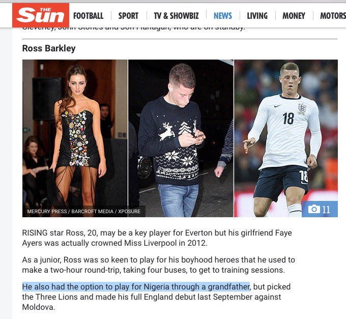 Hands up, how many people knew Barclay had a Nigerian grandparent? It seems the sun May of knew