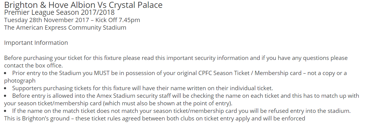 This is so frustrating. Their stupid rule doesn’t stop someone going in with a different name. If this was my Uncle instead of my Aunt then he’d be going in with matching tickets that both say ‘Mr’. Seems we literally won’t get in because of the ‘Mrs’ which is a stupid way to punish fans that would never cause trouble in the first place. If we did cause trouble and start a riot, they can trace it back to my Aunt anyway and ban her for life the feisty cow. Oh well, I guess take a punt is the only way but would hate to lose 60 quid.