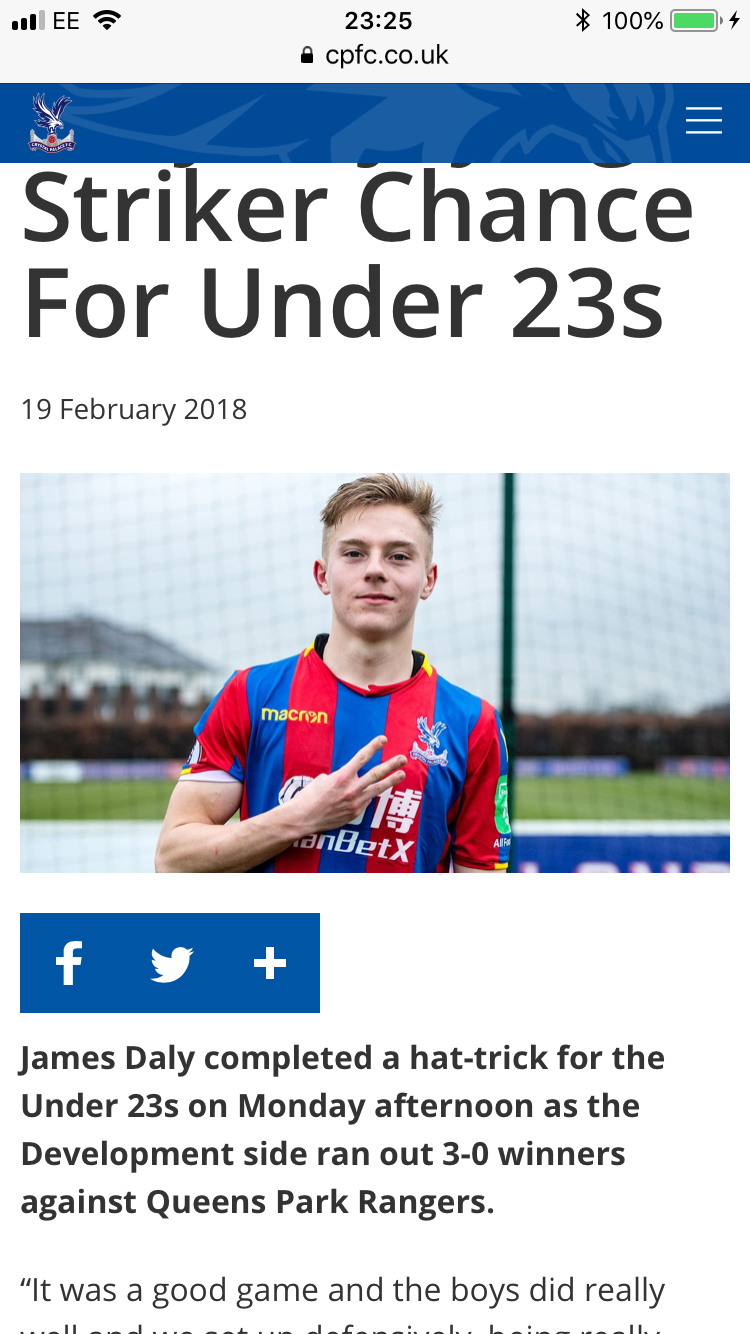 You sure.? Good to score a hatrick but is development football, sure he has played mostly with the u18s. Is a big jump, hope he takes his chance if he gets it .