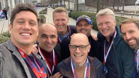 Celebrities at Superbowl 2019 The attached was on the BBC website, and it kind of reminded me of the sitcom with Keith Chegwin, Barry-from Eastenders and Les Dennis. All of them No-Marks from left to right, I named: