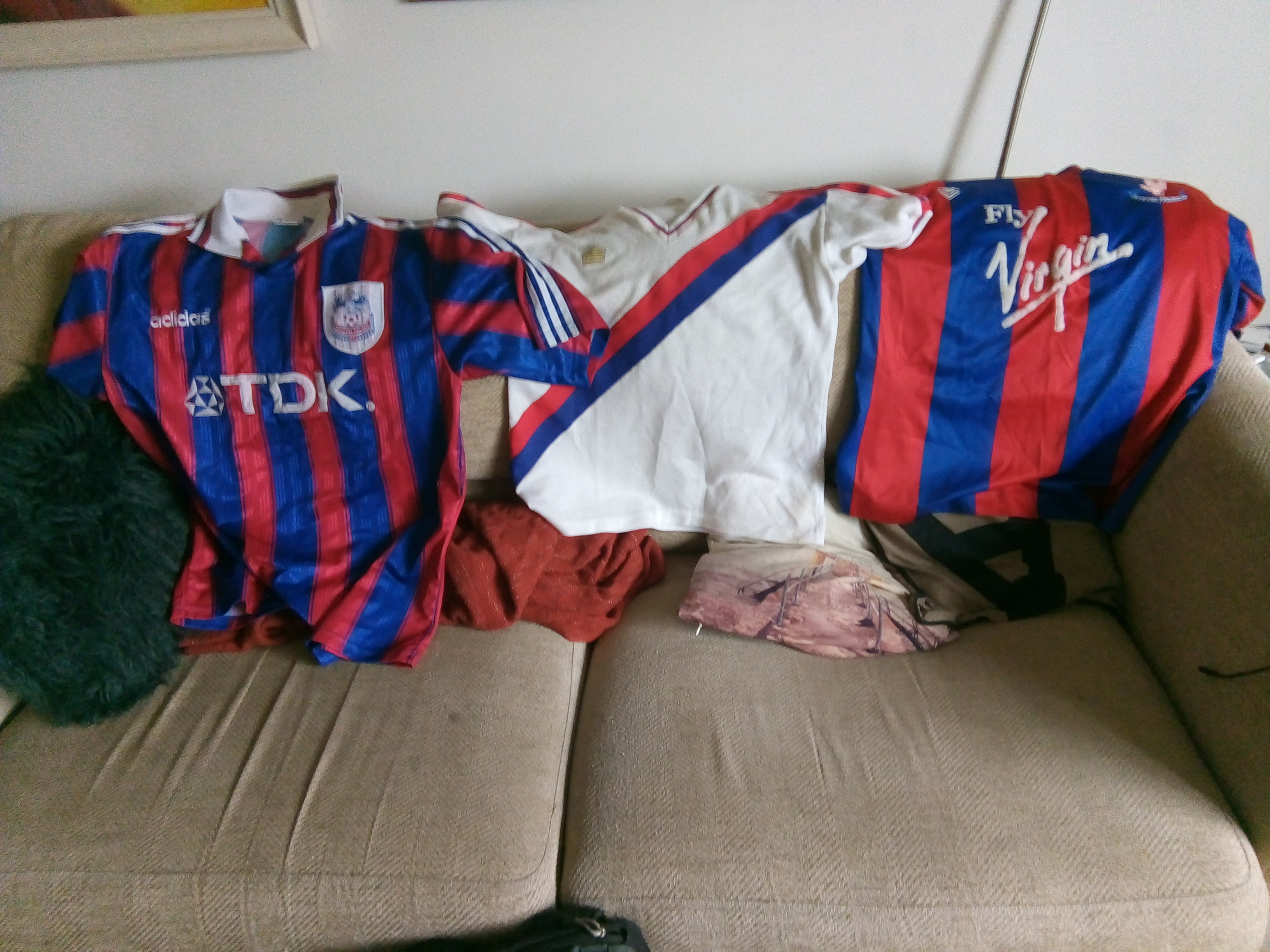 If anyone has any shirts pre-2005 home shirts for sale in medium/large without numbers and lettering, please let me know, I may be interested! Specifically looking for the Adidas TDK 1996-98 home shirt. I have the black CPFC 96-98 goalkeeper shorts in fairly good condition and a fair to acceptable Adidas blue sweatshirt with TDK on the front if you are interested.