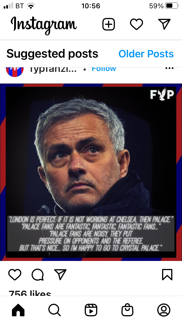 Mourinho has a bit of a thing for Palace. He might fancy a challenge with a lesser team where he can take 100% credit for any remote success. Stranger things have happened. These were my thoughts but unfortunately can’t see it ever happening